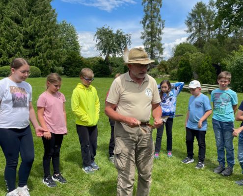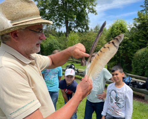 Die Schülerinnen und Schüler der 4. Klasse verbrachten am 13.06.2024 einen Projekttag im Waldviertel. Zu Beginn besichtigten die Kinder die Kittenberger Erlebnisgärten. Besonders viel Spaß bot der Abenteuerspielplatz. Danach ging es weiter in das NÖ Falknerei- und Greifvogelzentrum Schloss Waldreichs. Dort konnten die Schülerinnen und Schüler ihr Mittagessen bei Sonnenschein genießen. Anschließend gab es eine interessante Führung durch den Eulenpark, wobei zahlreiche heimische und europäische Eulen bestaunt werden konnten. Bei einer eindrucksvollen Flugvorführung konnten die Kinder einige Greifvögel aus nächster Nähe betrachten.