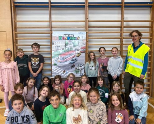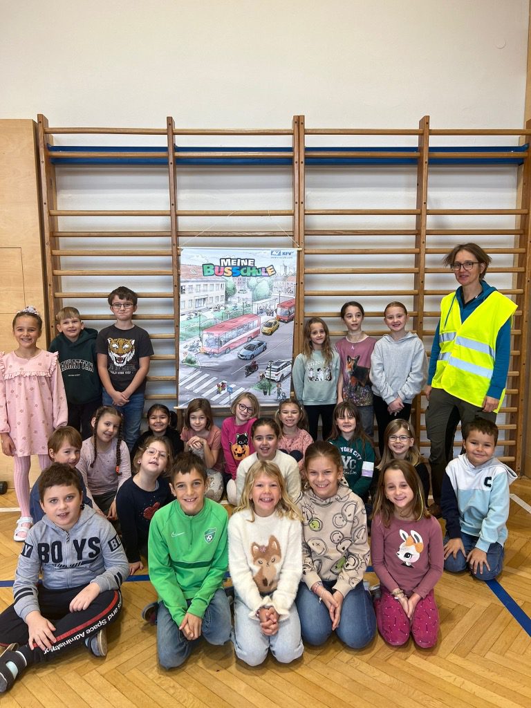 Am 05. und 06.11.2024 fand die Aktion „Busschule“ der AUVA an unserer Schule statt. Die Schülerinnen und Schüler sollen im Rahmen dieser Aktion für die „Herausforderung Busfahrt“ sensibilisiert werden und richtige Verhaltensweisen lernen, damit weder außerhalb noch im Bus Unfälle passieren. Spielerisch lernen die Kinder das richtige Verhalten an der Haltestelle, beim Ein- und Aussteigen des Busses und das richtige Verhalten im Bus. Wir bedanken uns bei der Firma Wachter, die uns einen Bus zur Verfügung gestellt hat.