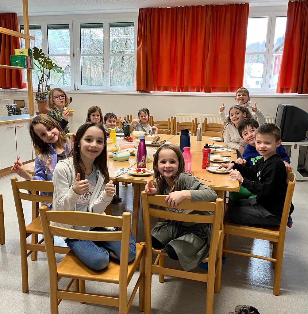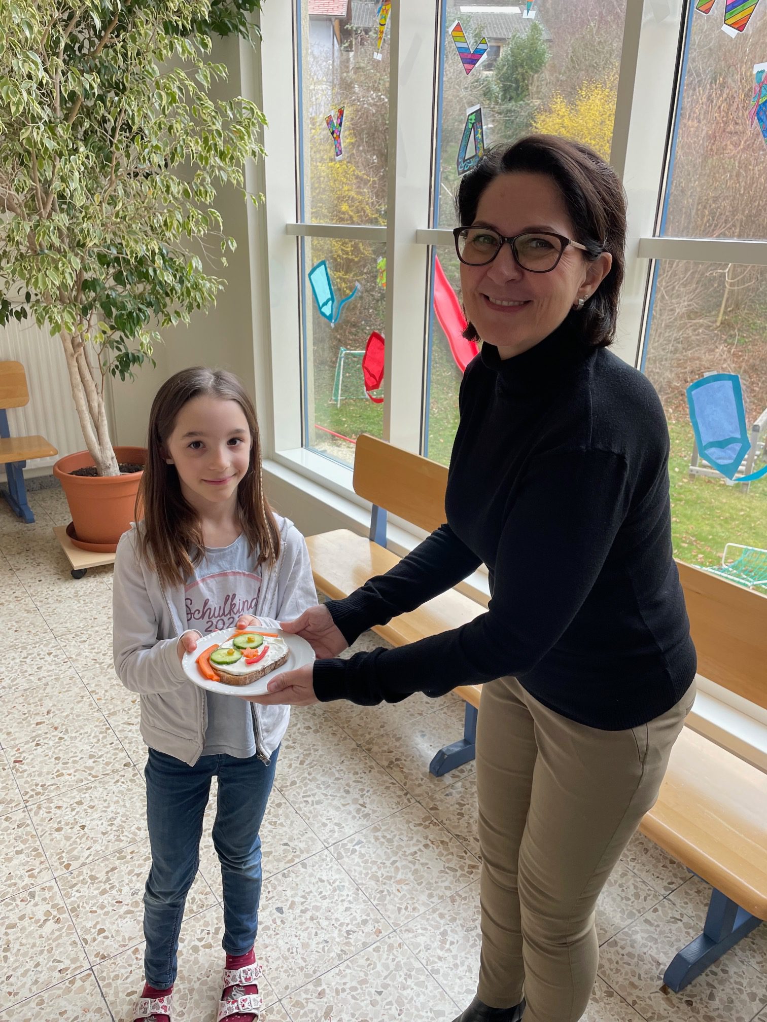 Zum Thema „Gesunde Ernährung“ bereiteten die Kinder der 1a Klasse in der Schulküche eine gesunde Jause zu. Dabei entstanden lustige Brote, die allen gut schmeckten.