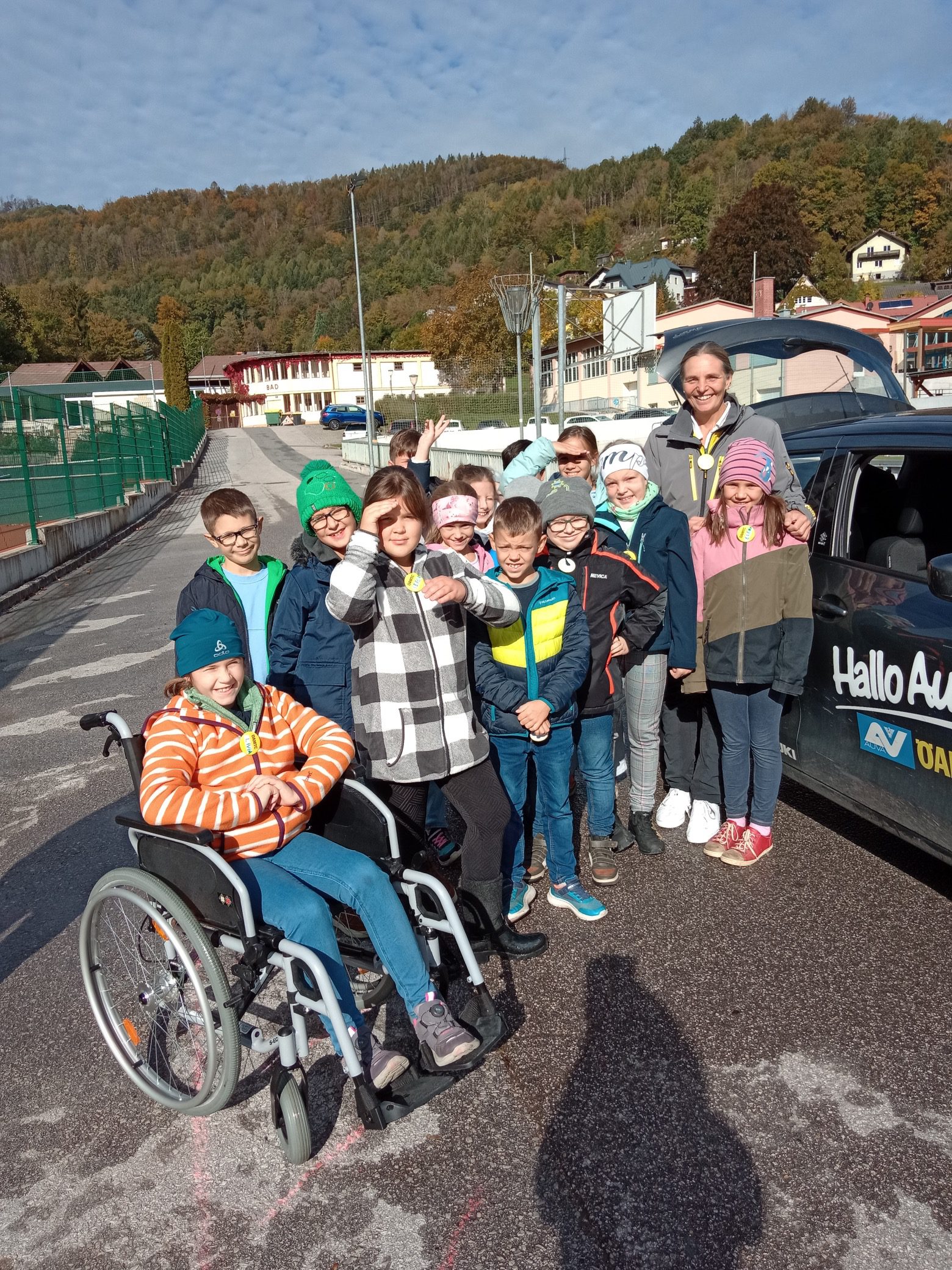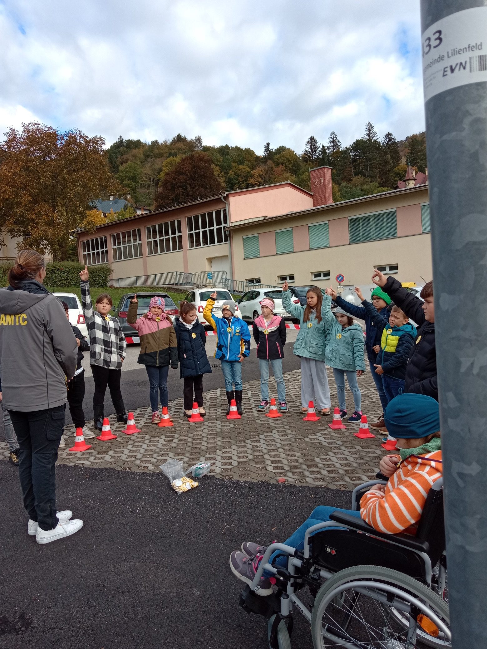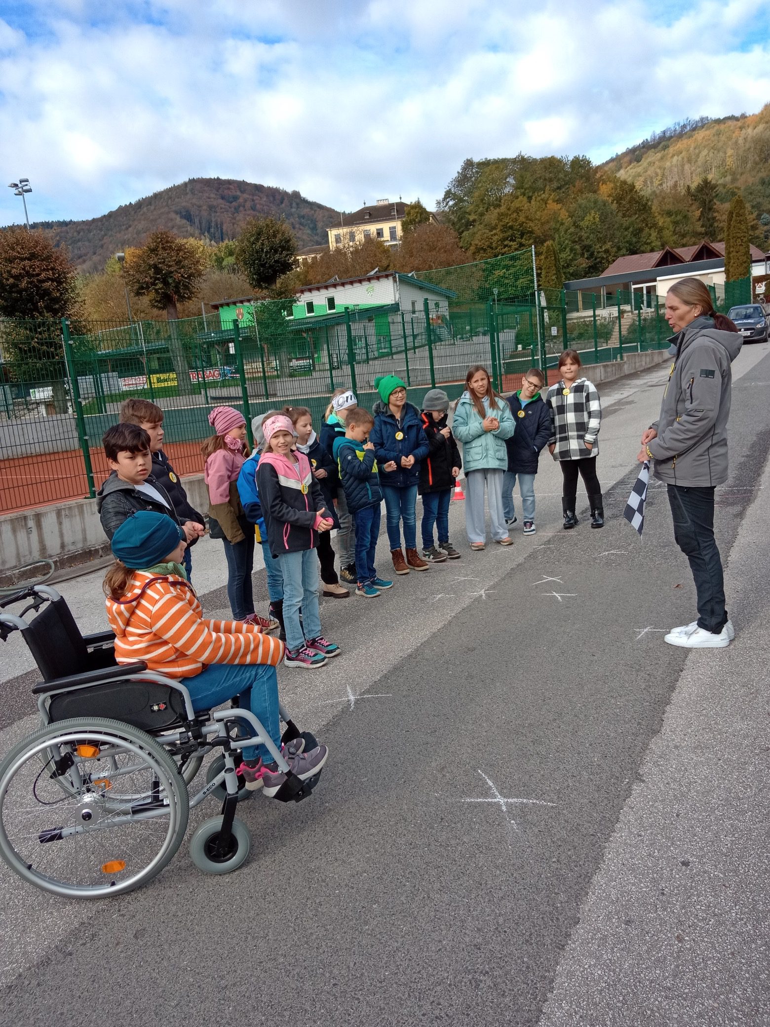 Am 14.10.2024 nahm die 3. Klasse an der Verkehrssicherheitsaktion des ÖAMTC „Hallo Auto“ teil. Mit den Kindern wurde durch Selbsterfahrung die Formel „Reaktionsweg + Bremsweg = Anhalteweg“ erarbeitet. Die Kinder erlebten, dass selbst eine Notbremsung das Auto nicht sofort zum Stillstand bringt. Eine lebenswichtige Erkenntnis bei der selbstständigen Bewältigung des Schulweges.