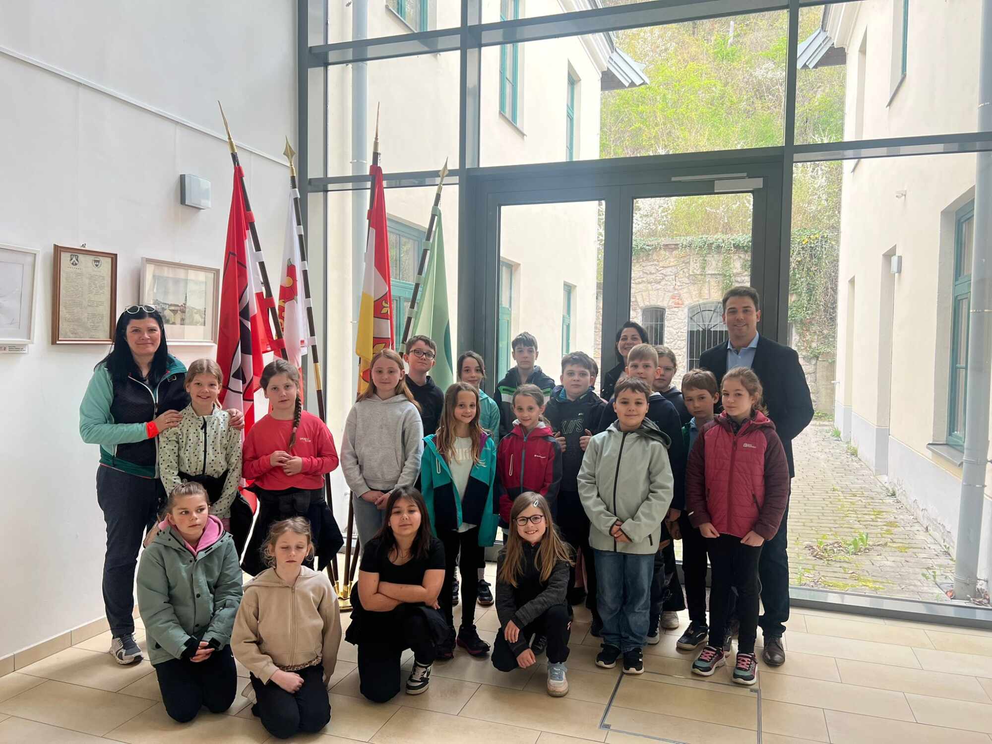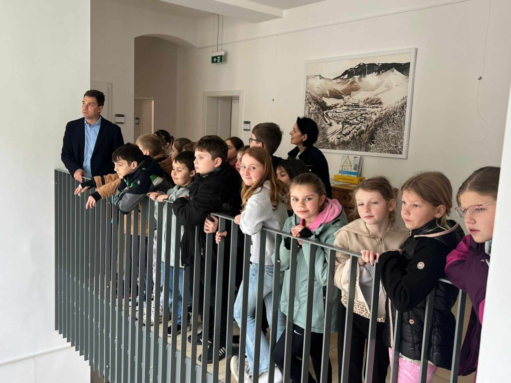 Am 13. April 2026 besuchte die 3. Klasse der Volksschule im Rahmen des Unterrichts das Gemeindeamt. Dort hatten die Kinder die besondere Gelegenheit, den Bürgermeister unserer Stadtgemeinde, Herrn Mag. Manuel Aichberger, persönlich kennenzulernen. Schon beim Betreten des Gebäudes war die Aufregung groß, und die Neugier auf die Arbeit in der Gemeinde deutlich spürbar.