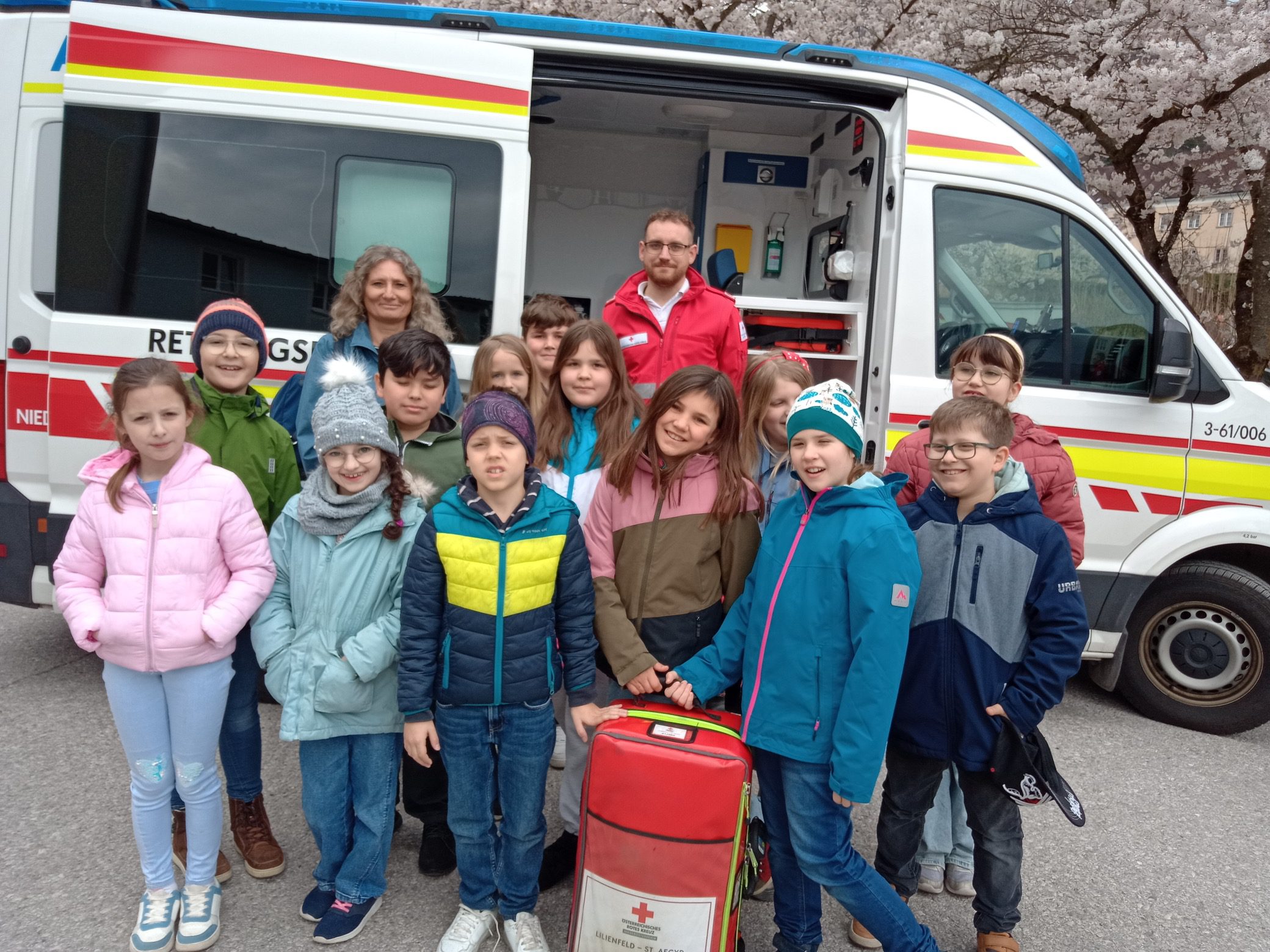 Die Kinder der 3. Klasse machten am 10.04.2025 einen Lehrausgang zur Rettungsstelle Lilienfeld.