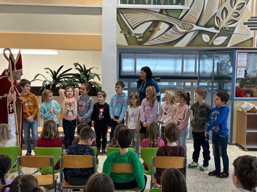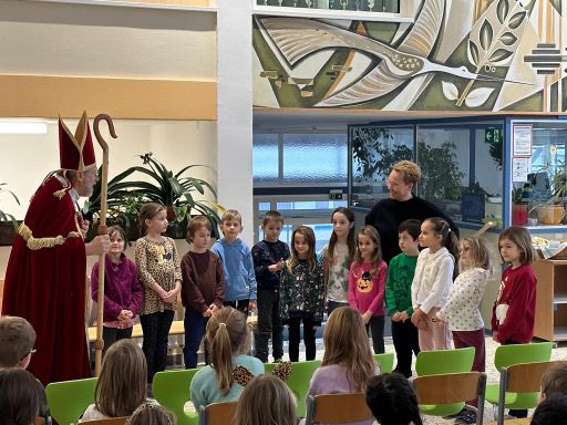 Am 6.12.2023 besuchte der Nikolaus die Mathias Zdarsky Volksschule. Die Kinder der beiden 1. Klassen hatten ein Gedicht vorbereitet und es wurden auch einige Lieder gesungen. Die Kinder haben sich sehr über den Besuch des Nikolaus‘ gefreut. Der Elternverein sponserte dankenswerterweise „Krampusse“ für alle Kinder.