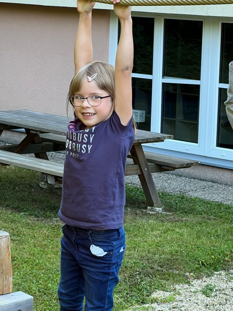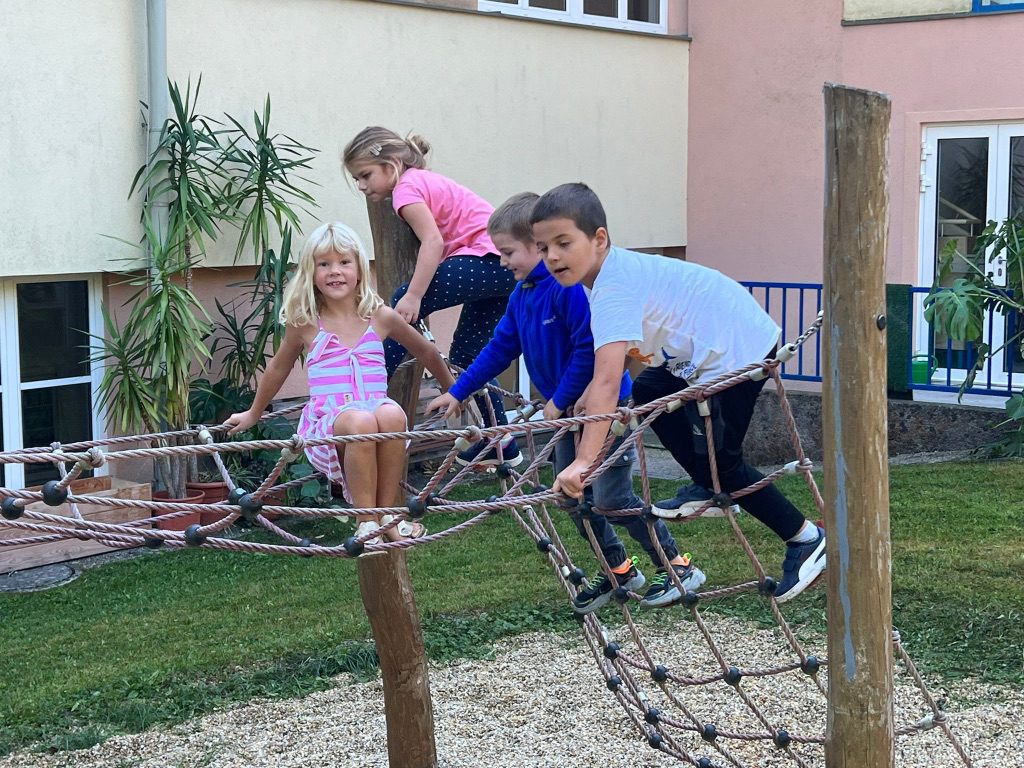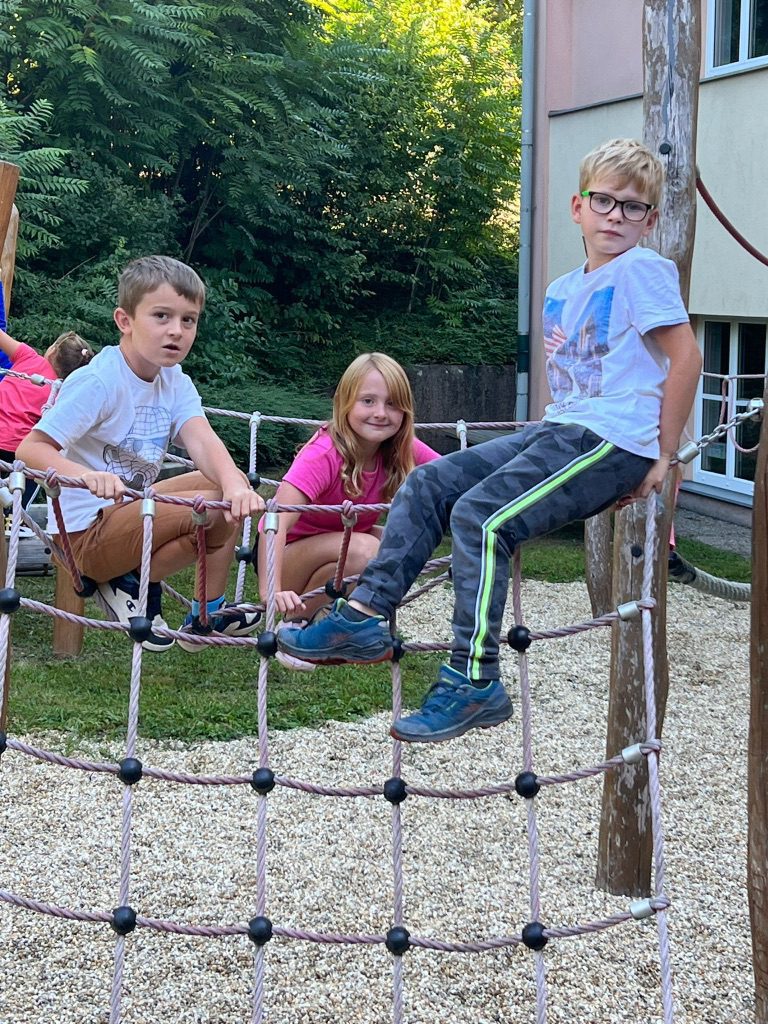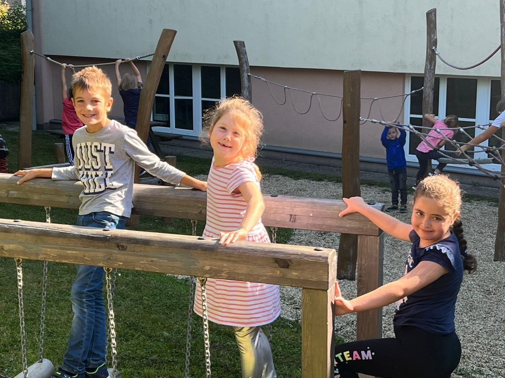 Die 1b Klasse bewegte sich in der frischen Luft am schuleigenen Spielplatz. Die Kinder hatten großen Spaß bei diesem herrlichen Wetter.