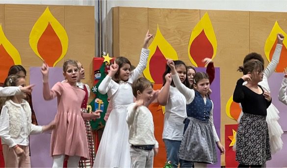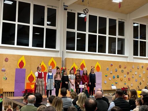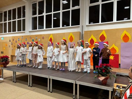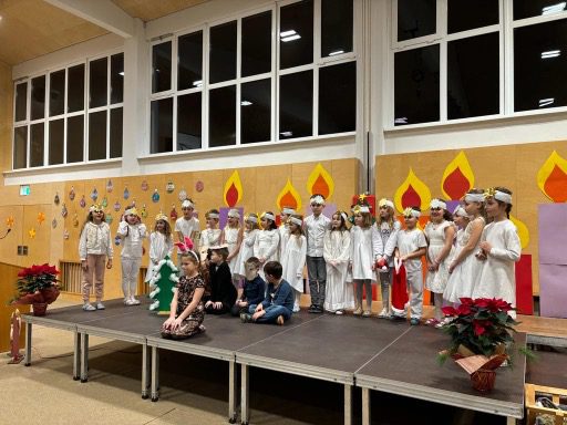 Am 20.12.2023 fand an unserer Volksschule eine außerordentlich gelungene Weihnachtsfeier statt, die das Herz jedes Besuchers erwärmte. Die Lehrerinnen hatten gemeinsam mit den Schülerinnen und Schülern ein buntes Programm aus Liedern, Gedichten und kleinen Theaterstücken einstudiert. Anschließend versorgte der Elternverein alle Gäste mit Kuchen, Punsch und anderen Leckereien.